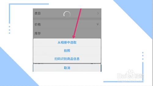 进入到宝贝发布的页面后,最上面添加图片是宝贝主图,只能添加五张,可以选择手机拍照,也可以选择手机里面已经有的照片