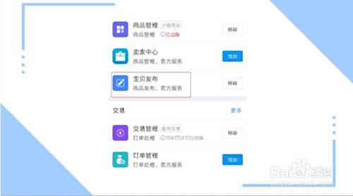 添加好了【宝贝发布】后点进去宝贝发布里面。