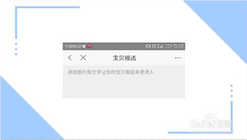 宝贝描述是编辑宝贝的详情页面,可以发宝贝细节图片还有宝贝的介绍,以及宝贝的参数。