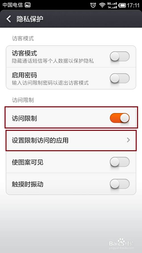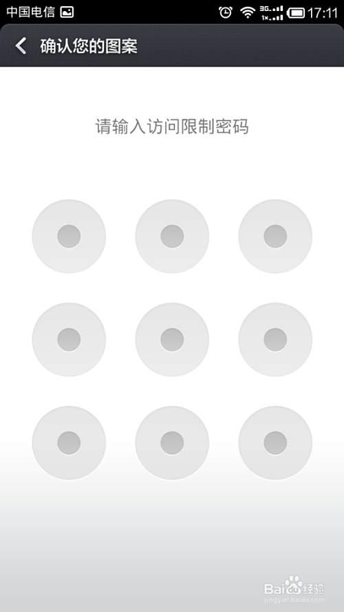 设置访问密码,选择一种九宫格图案,注意,这是你以后访问你限制访问应用的凭证
