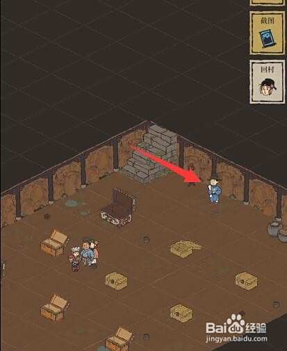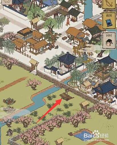 1、进入桃花村,点击入口处的位置。