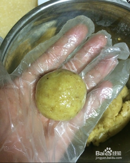 分成40克一个的小圆子(此方我做了9个40克一个的桃酥和9个20克的桃酥,实践证明还是应分成20克的就可以了,40克做出来显得有点大。)