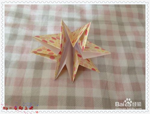 接着我们就把所有突出来的角向外折,形成明显的折痕,如图示;