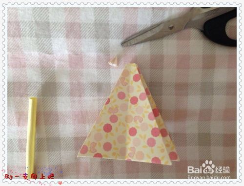 正对我们的三角形还有一个角,该角我们仍然按照第6步的方法,把该角立起后打开向下压,形成如图示形状;