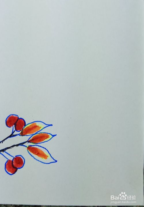 在白纸上用线条和曲线画出花儿的轮廓,涂上红色的色彩。