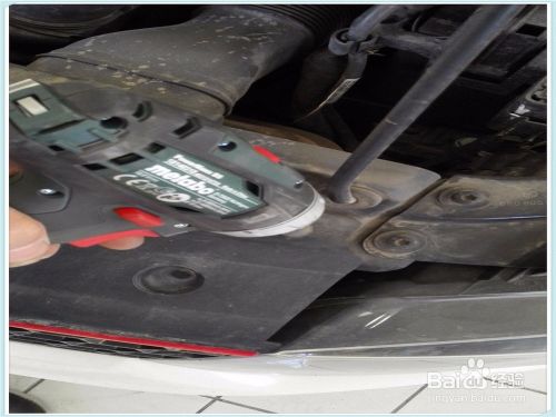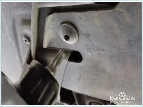 固定poloGTI下部螺丝的拆卸。如图所示,取出t-25花键,用t-25花键将固定下部的螺丝拆卸下来,下部螺丝一共有8条,大家逐一拆卸下来就好啦,拆卸下来的螺丝同样收好,以备安装时用。