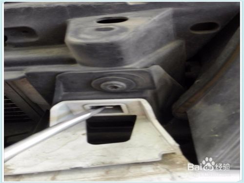 固定前保险杠卡子的撬开。螺丝拆卸完后,我们还需要将前保险杠的卡子撬开,如图所示,取出一字改锥,用一字改锥将固定前保险杠左右两边的卡子撬开,大家要细心一点,避免将卡子撬断。