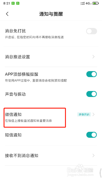 在通知与提醒中,找到“微信通知”,点击该选项。