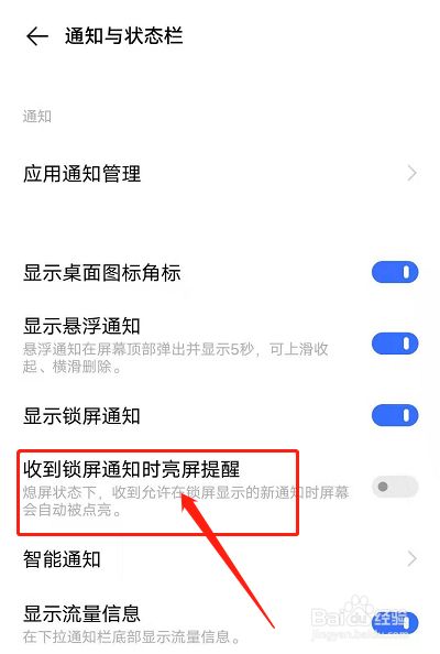 进入页面后,找到“收到锁屏通知时亮屏提醒”,如图所示。