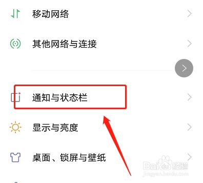 进入“设置”页面后,找到“通知与状态栏”,如图所示。