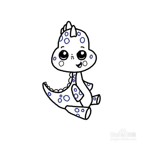 在恐龙宝宝的头部、身体、前肢和后肢上画一些斑点。