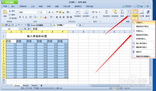 选中表格,点击工具栏中的【行和列】按钮,可以设置表格的行距和列宽(同时也可以在这里插入/删除行或列);