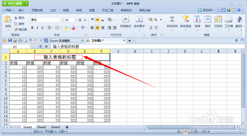 在合并后的单单元格中输入表格的标题,选中文字可以更改文字的字体、大小颜色;