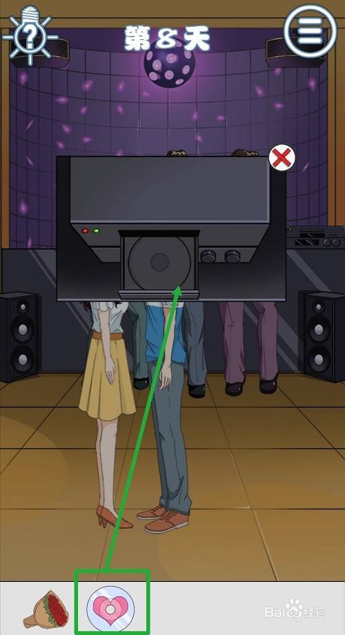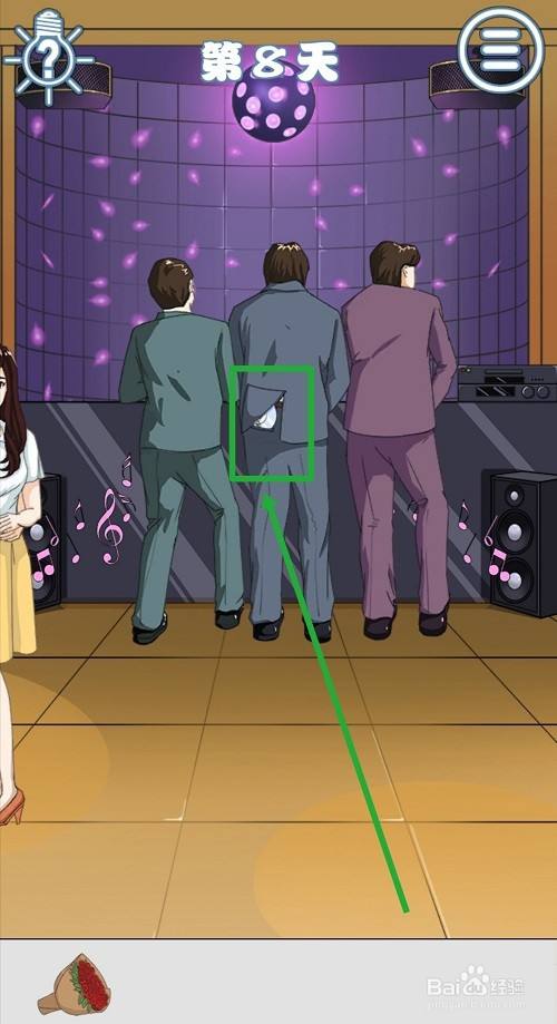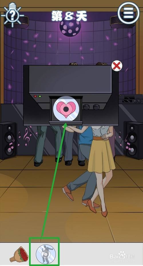 但男女主开始跳舞事,点击中间男子的裤子左后侧口袋,可以得到一张【摇滚光盘】。