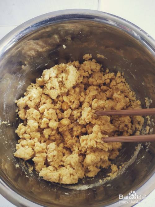 用筷子将玉米面和水混合均匀