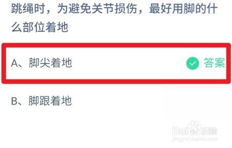 跳绳时为避免关节损伤最好用脚的什么部位着地蚂蚁庄园?正确的跳绳姿势很关键,选对答案的话就可以领取180g小鸡饲料了,小伙伴们一起来看看今天的正确答案吧!
