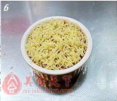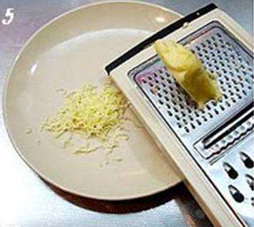 4马苏里拉芝士用刨丝器较细一端的刨网上擦成细丝;