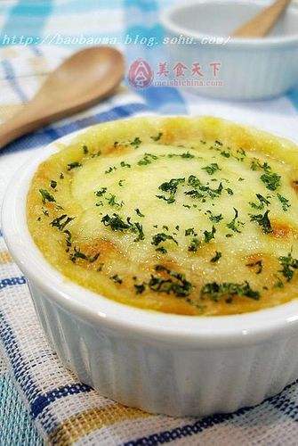 看见图上的美食你心动了吗?如果心动了的话就赶快做一份尝尝吧。下面我来教你如果自制这款美味的芝士焗红薯泥