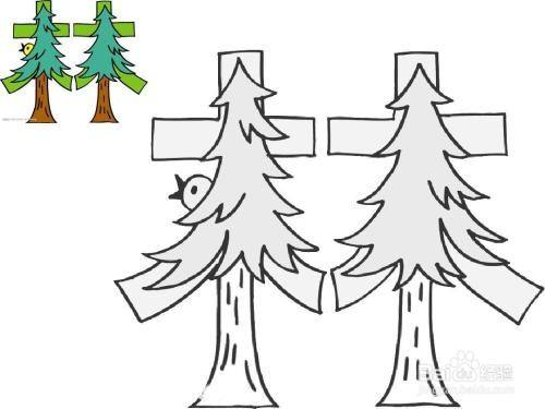 第四步,我们最后在图纸的左上角画出小树涂上颜色的样子就可以了,关于汉字“林”的画画就画好了。