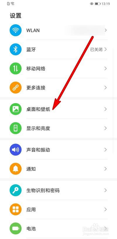 在设置界面选择桌面和壁纸。