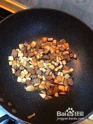 腌制牛肉粒后加入油、是为了锁住牛肉粒水分。
