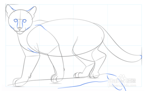 详细描绘美洲狮的腿和脸的形状。添加眼睛和鼻子。