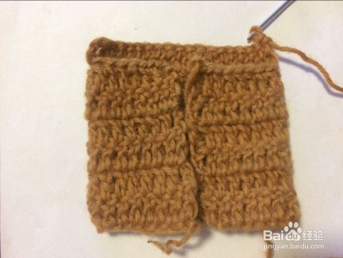 接着开始分前后片,前片左右两片个10针,后面20针。我们先开始钩后面,同样每个辫子里钩一个长针,钩到头再钩3个辫子针然后翻面,继续在每个辫子里钩一个长针。