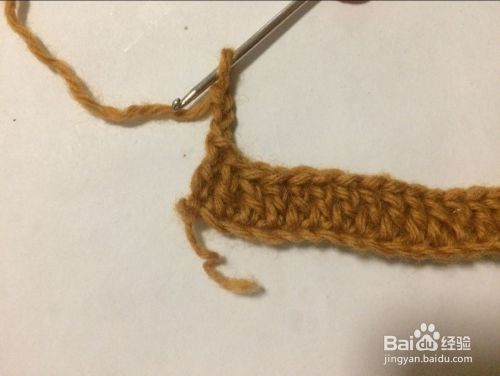 准备好毛线和钩针;我们先来做个示范,钩40个辫子针。然后往回在每个辫子里钩出一个长针。