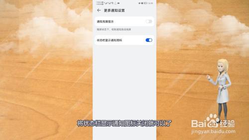 在更多通知设置界面中,将状态栏显示通知图标关闭就可以了。
