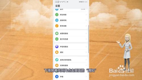 进入华为手机设置界面后,下滑屏幕找到并点击里面的“通知”。