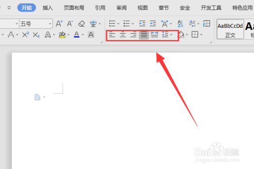 打开WPS,找到开始菜单栏中的段落设置区域,点击横线组成的图标可以对段落的对齐方式进行设置;