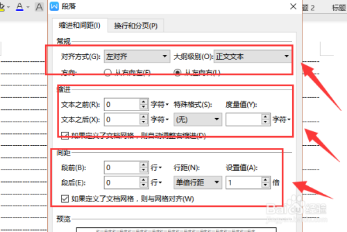 选择缩进和间距选项栏下的常规选项,可以设置段落的对齐方式、选择缩进和间距选项栏下的缩进选项,可以设置段落的缩进方式、缩进字符以及特殊格式、选择缩进和间距选项栏下的间距选项,可以设置段落的间距、行距;
