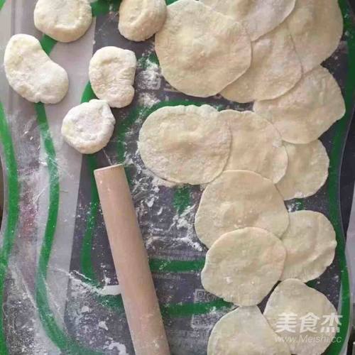 把揉好的面粉分成大小相同的剂子,擀好面皮,注意中间稍微厚点。