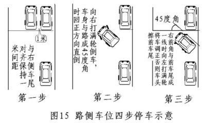 【非字型停车位二】当车子驾驶到选定车位旁时,开始想左打方向盘前进,当车子与路面成45度角时左右时开始回正停车,然后向右打方向盘开始倒车,在倒车的过程中注意观看左、右两侧观后镜,就可以顺利将车子停进车位了。