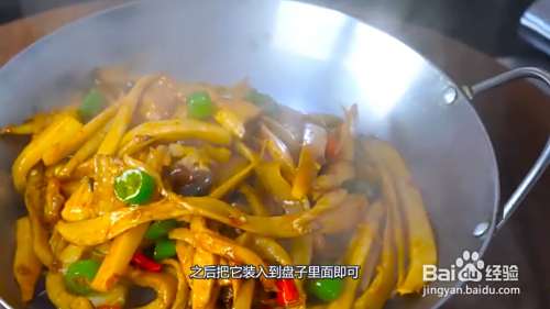 开大火翻炒三十秒把调料翻炒均匀,之后把它装入到盘子里面即可。