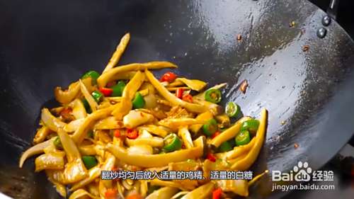 翻炒均匀后放入适量的鸡精、适量的白糖,适量蚝油、适量生抽。