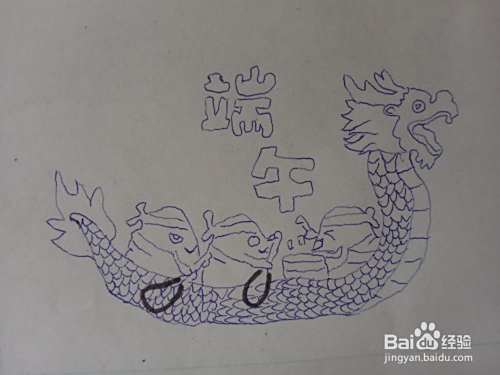在端午两个字的旁边画格,写内容。