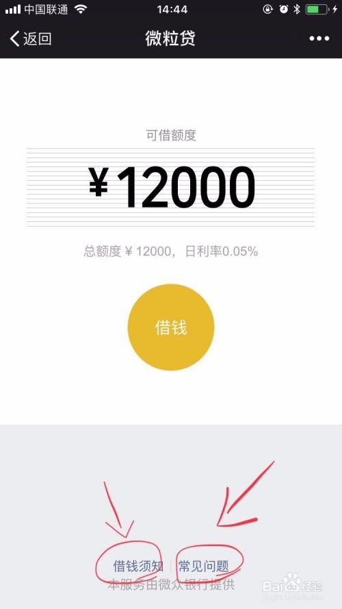会弹出下图的页面,上面是你可以借钱的额度,借钱之前可以看看借钱须知和常见问题