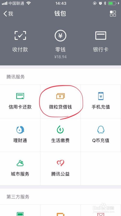 进去后可以看到如下图所示的页面,点击微粒贷借钱