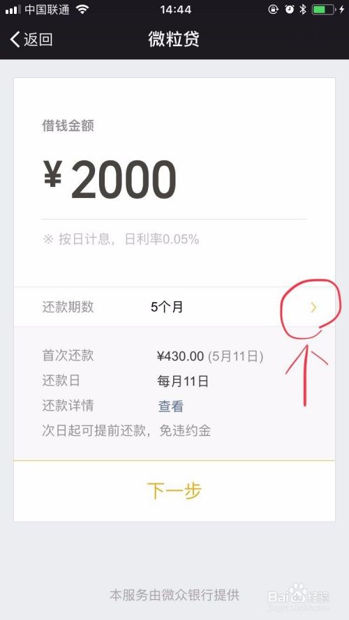 假设我要借2000,在金额上就输入2000,点击图中圈出的部分,可以更改借钱还款期数