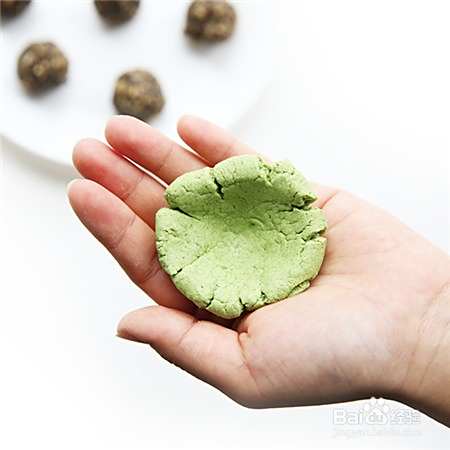 取一小块面团搓圆,用手捏成中间凹的圆形。