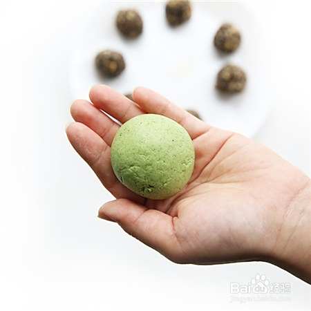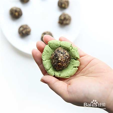 将黄油融化,倒在馅料中揉成团,再分成10克/个,揉圆备用。