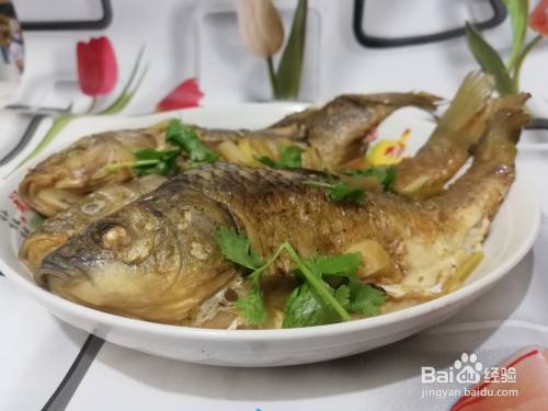 出锅装盘,香菜洗净切段,撒在鱼上。