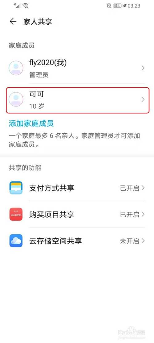 ①、家人共享可让最多六位家庭成员轻松共享主题、阅读和应用市场等业务的购买项目、华为音乐家庭订阅及Cloud储存空间方案,而无需共享帐号;②、可以使用同一张银行卡或其他支付方式为家人购买的项目付款,并可以直接在家长的设备上批准孩子的购买行为;③、可通过“家人共享”共享相册、以及更多内容,帮助全家人保持联系。