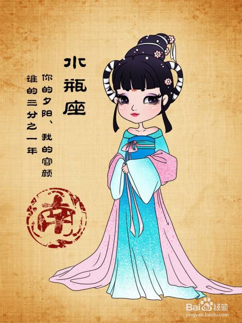 十二星座分别为白羊座、金牛座、双子座、巨蟹座、狮子座、处女座、天秤座、天蝎座、射手座、摩羯座、水瓶座、双鱼座。我们用古装十二星座简笔图片来一一说明。