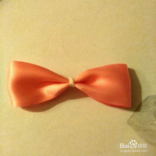 剪掉多余部分的细丝带,蝴蝶结就做好了。
