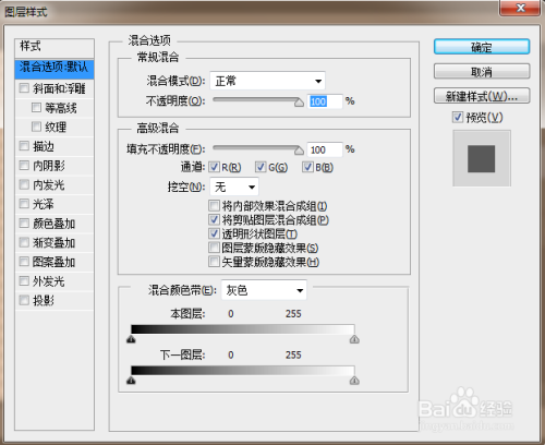 如果我们单击图层缩略图和图层名字以外的地方,我们可以打开图层样式对话框,在这里我们可以对图层进行一些附加效果的添加