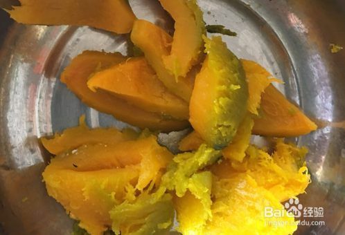 南瓜蒸熟去皮