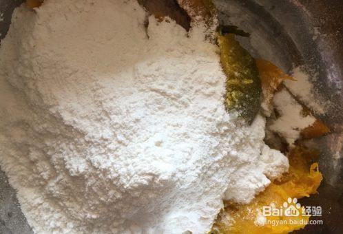 倒入糯米粉,这个可以根据南瓜泥的湿度调节用量,不是固定的