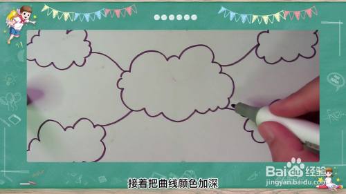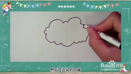 最后,将云朵的边画上自己喜欢的颜色。